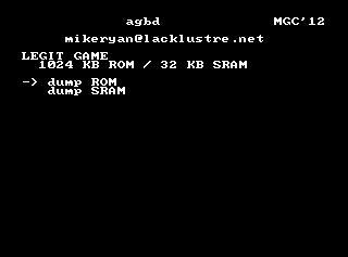 Pretty simple: plug in transfer pak with game, turn on 64drive, launch agbd.z64. You can dump the ROM and SRAM (on carts that have SRAM).
